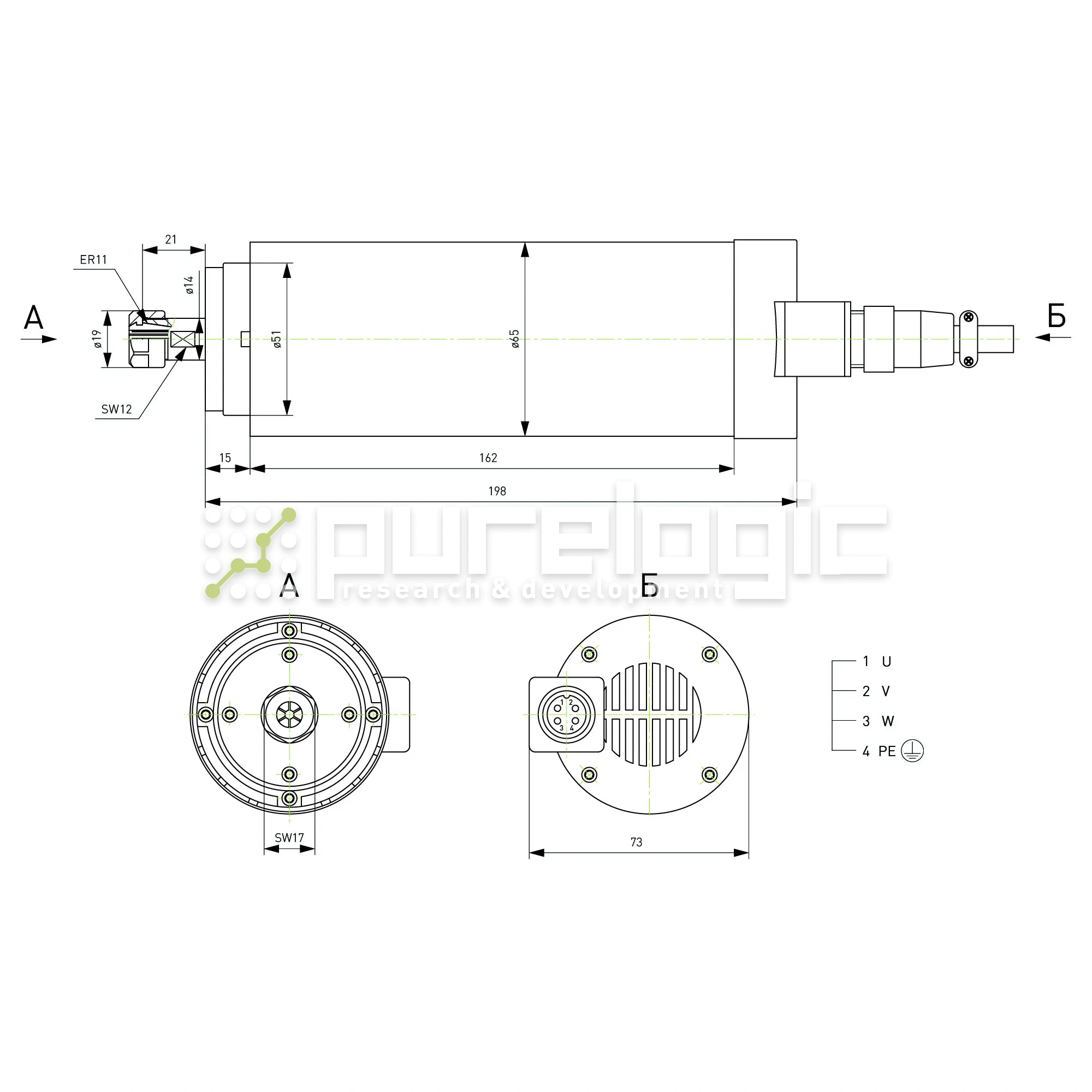 Шпиндель воздушного охлаждения ZA0.8/220/24K-D65/ER11 (GDZ-15-1)