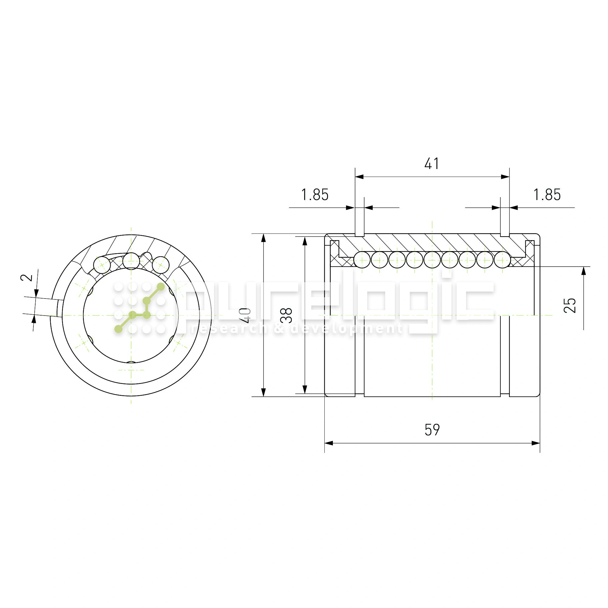 Линейный подшипник на вал Ø25мм. С возможностью компенсации люфта.