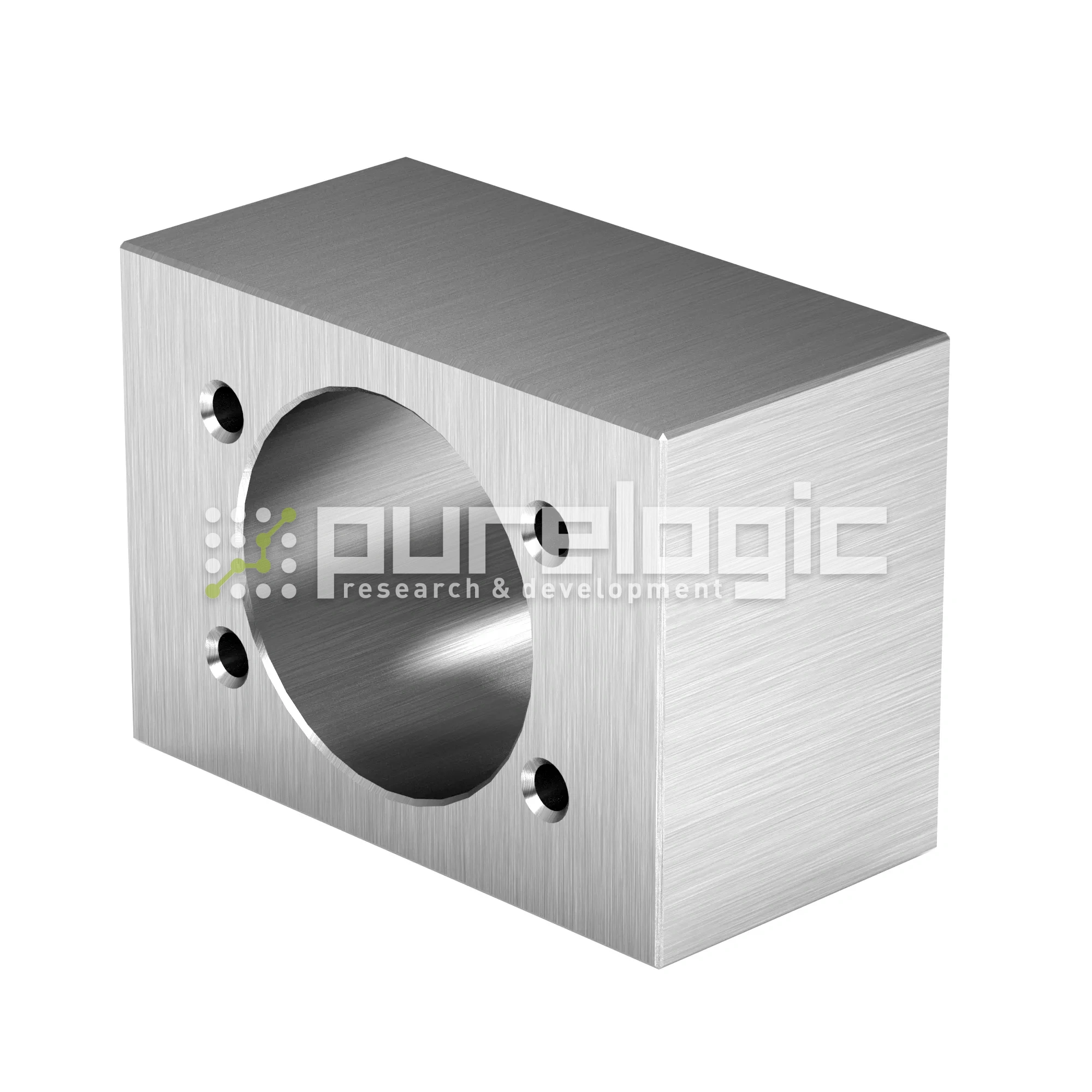 Модуль крепления скоростной гайки ШВП серии SFY. Изготовлен из алюминиевого сплава ГОСТ 4784-2019. Сопрягаемые поверхности обработаны. Предусмотрены резьбовые отверстия для крепления гайки и крепления к плоскости. Для гаек SFY4040.