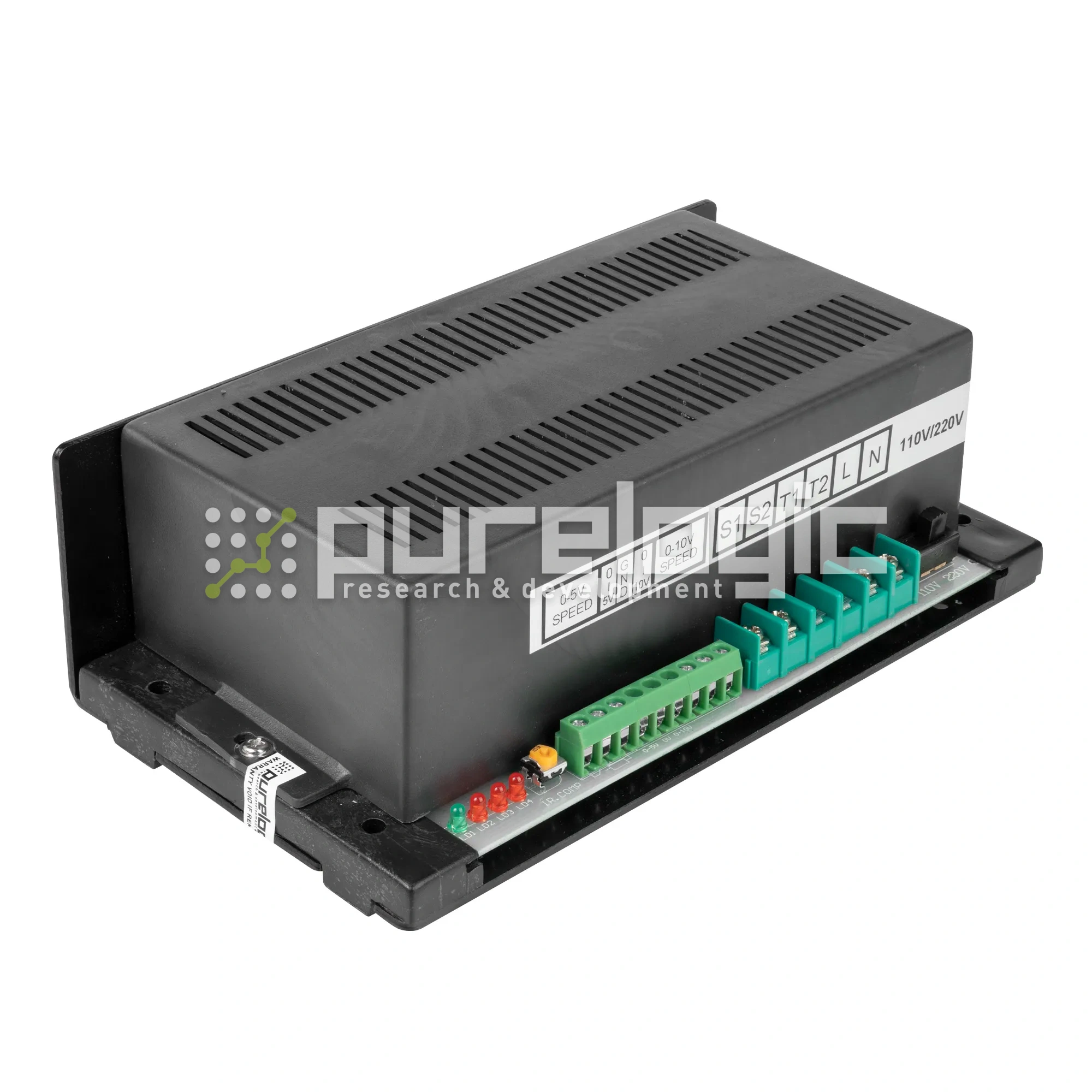 Драйвер с источником питания для коллекторного двигателя 5-110В, ток до 10А, 600Вт. Напряжение питания ~220В от сети переменного тока. Предназначен для управления коллекторными шпинделями постоянного тока или другими коллекторными электродвигателями. Обороты шпинделя регулируются ШИМ-сигналом (например от MACH3) или напряжение (внешним потенциометром).