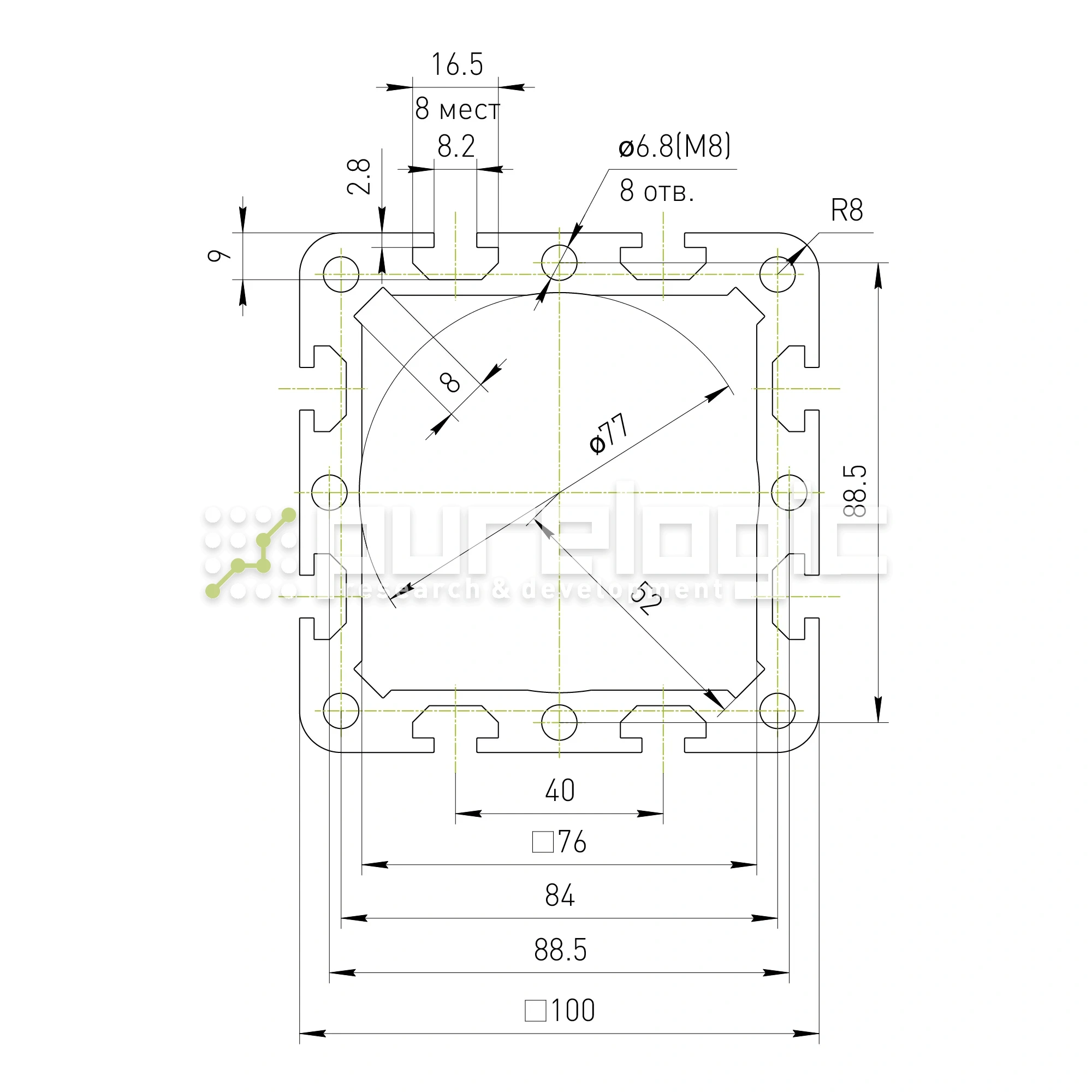 Профиль алюминиевый HC100100-8