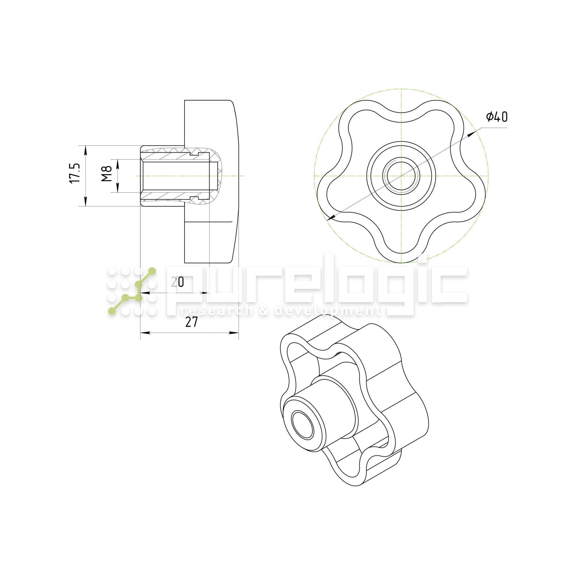 Ручка пятилепестковая 100208-40*M8