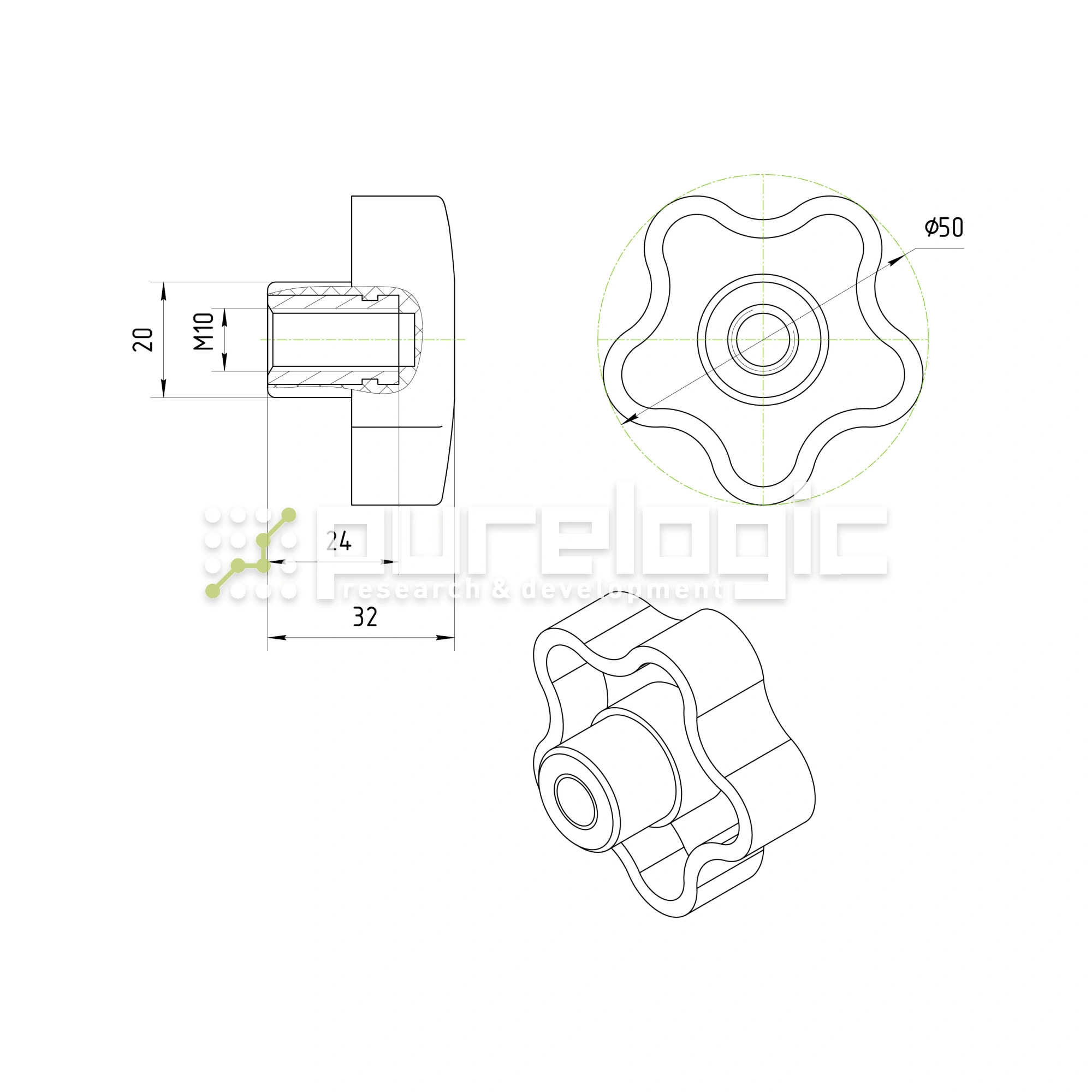 Ручка пятилепестковая 100208-50*M10