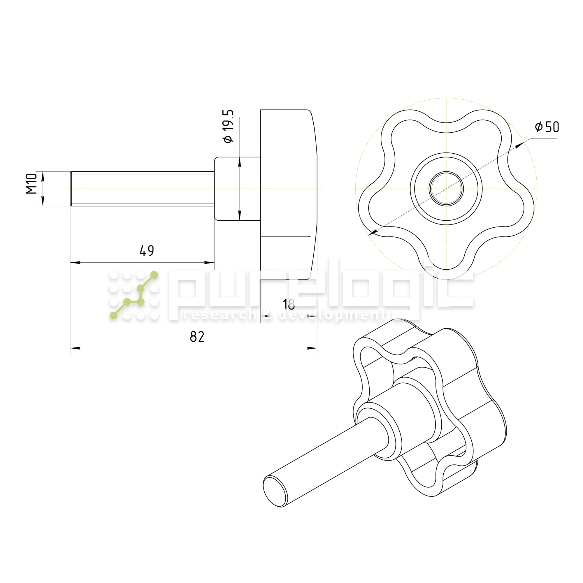Ручка пятилепестковая 100208-50*M10*50