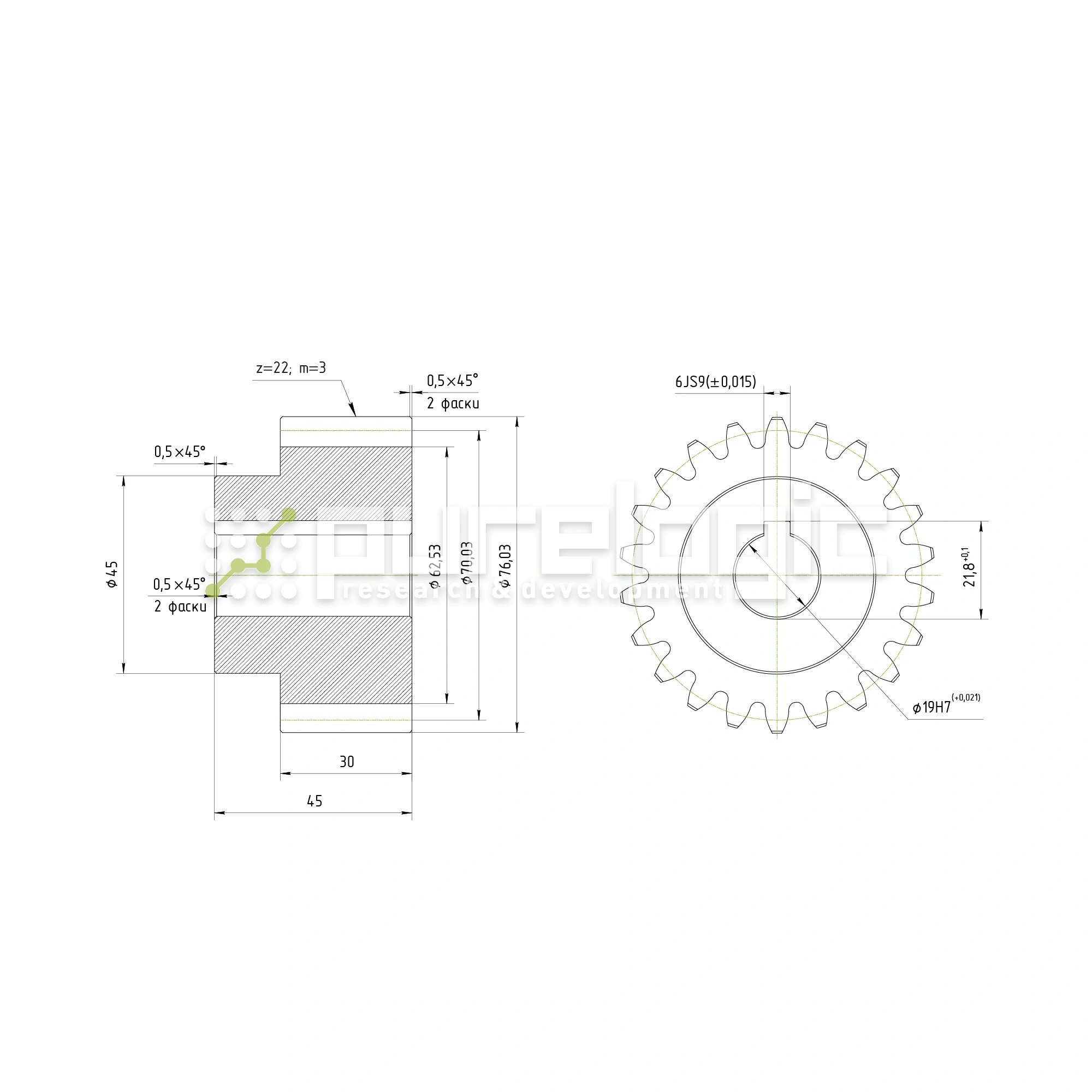 Шестерня косозубая GH3-T22D19