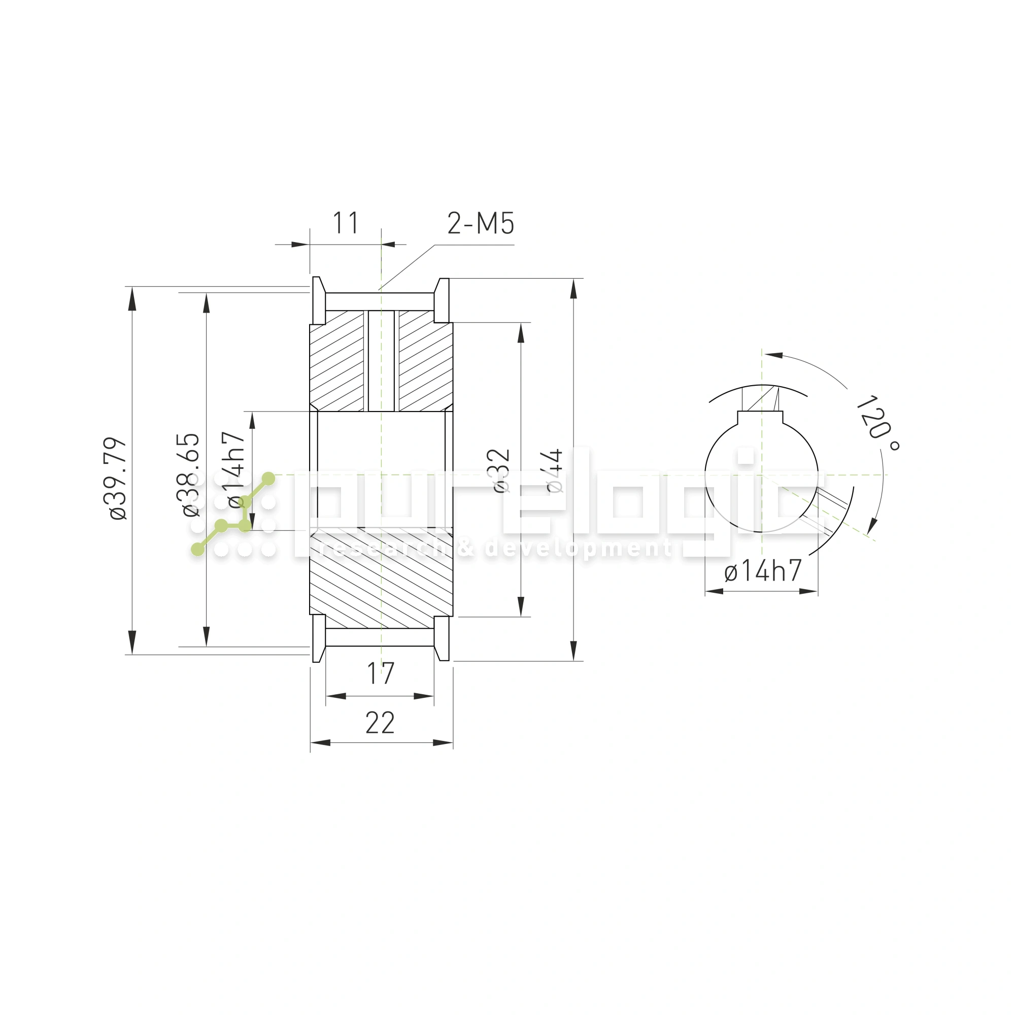 Шкив зубчатый BLA-25-5M-15-A-N14