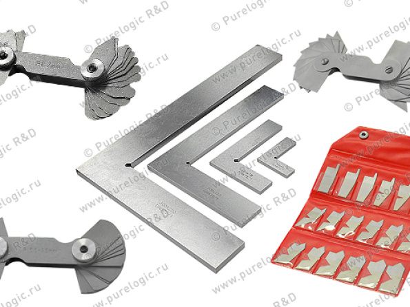 Наборы шаблонов, лекала - предназначены для оценки радиусов выпуклых и вогнутых поверхностей, оценки острых и тупых углов. Угольники стальные слесарные плоские предназначены для проверки прямых углов 90º и применяются при слесарно-сборочных и лекальных работах для контроля взаимно-перпендикулярного расположения деталей. Материал - нержавеющая сталь.